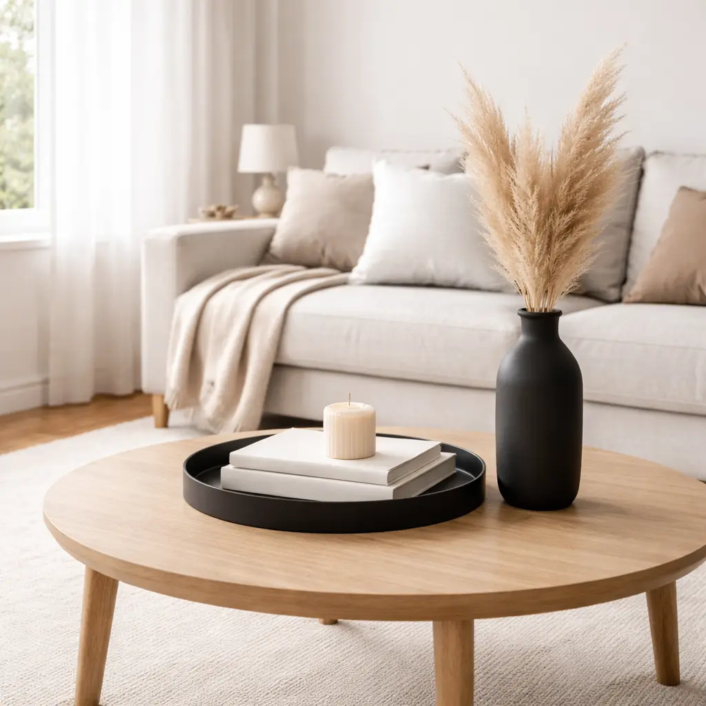 In a modern space, a rustic clay planter can clash. In a minimalist setup, a baroque candle holder will look odd. It’s not about everything being identical, but speaking the same visual language. If your living room is modern, the coffee table decor should be too—clean lines, neutral tones, simple forms.